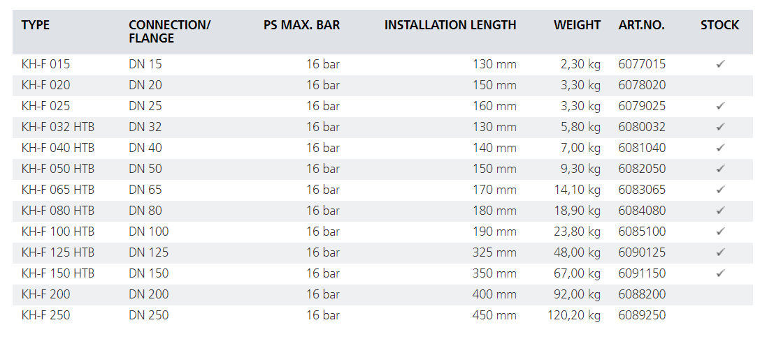 Marchel 法蘭(lan)球閥 PS16bar KH-F系列(lie)球閥 認證(zheng):壓力設備(bei)指令 2014/68/EUDVGW-G (DIN EN 13774)用于(yu)根據 DVGW實踐(jian)規範 G 260手動(dong)關閉氣體(ti),空氣和水(shui),PS max. 16 巴PS 16 = PS 最大值(zhi)。16 bar, TS –20°C 至 +60°CHTB PS max. 5 巴 (GT5) DN 32 - DN 150DN 250 方式(shi)減少到 DN 200